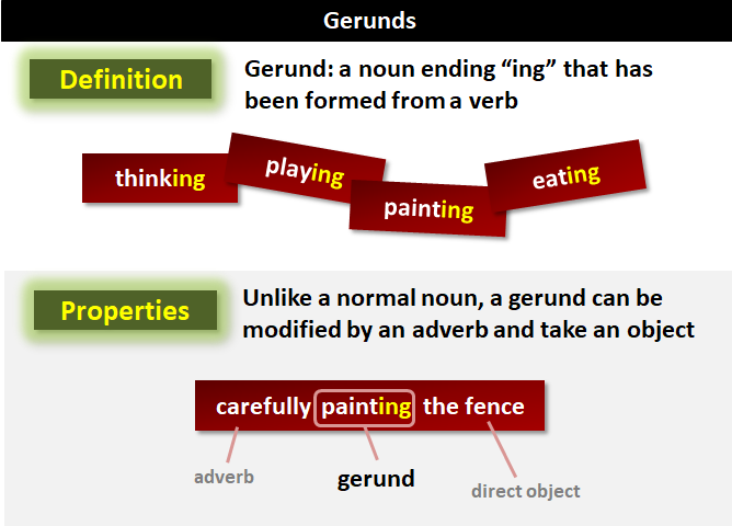 Learn the definition of gerunds as a grammatical unit with example sentences, quizzes, and like a gerund, a gerund phrase functions as a noun. Learn more about gerunds and gerund phrases, and practice sentence correction example questions as they would appear on the gmat verbal. In this lesson, you will learn the definition, different components of a gerund phrase in english grammar. 3 895 просмотров 3,8 тыс. It is what the sentence is about.